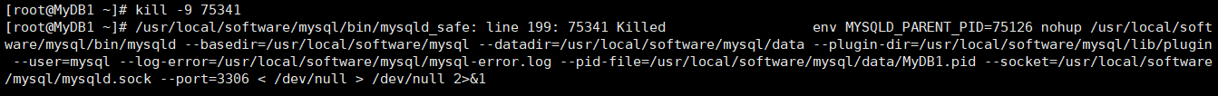 [root@MyDB1 ~]# kill -9 75341 #直接殺死進(jìn)程