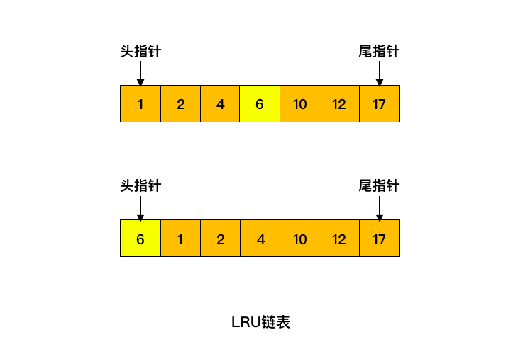 如下圖所示,如果要訪問的數(shù)據(jù)在 6 號頁中,則將 6 號頁放到鏈表頭部即可,這種情況下沒有緩存頁被淘汰。
