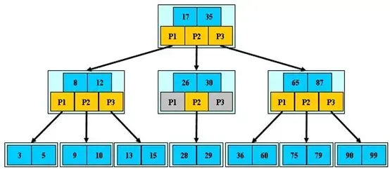 下圖是一個(gè)3階B樹的例子: