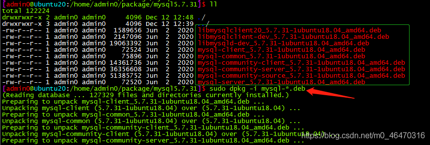 # 再次用dpkg進(jìn)行安裝 cd mysql5.7.31 sudo dpkg -i mysql-*.deb