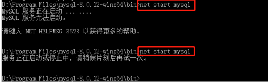 如果再執(zhí)行啟動命令會報“服務(wù)正在啟動或停止中,請稍候片刻后再試一次”。