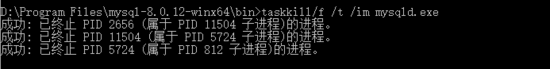 taskkill/f /t /im mysqld.exe