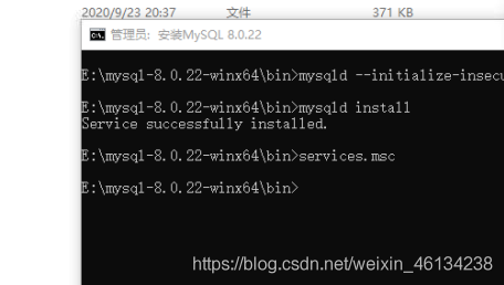 2.鍵入命令 mysqld --initialize-insecure