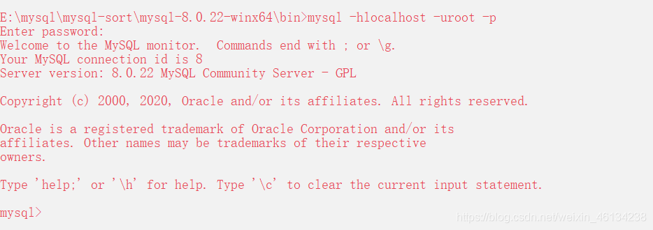 2. 鍵入命令 mysql -hlocalhost -uroot -p
