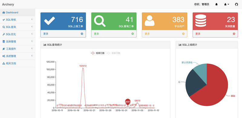 Archery 定位于 SQL 審核查詢平臺,旨在提升 DBA 的工作效率,支持多數(shù)據(jù)庫的 SQL 上線和查詢,同時支持豐富的 MySQL 運維功能,所有功能都兼容手機端操作。