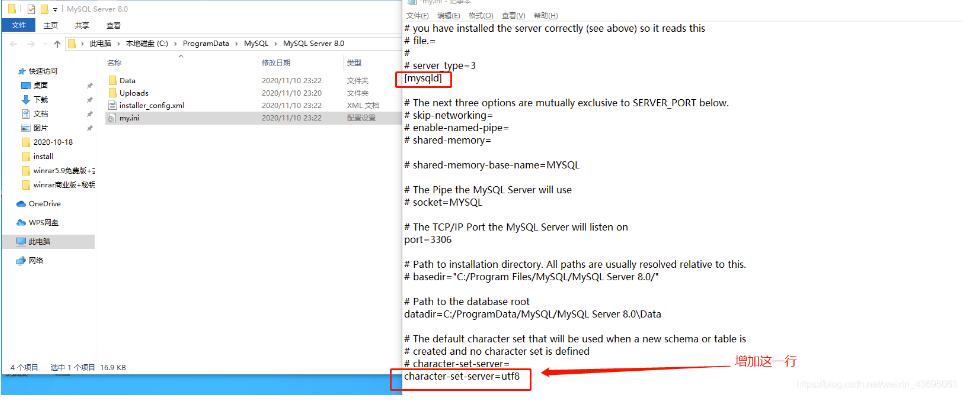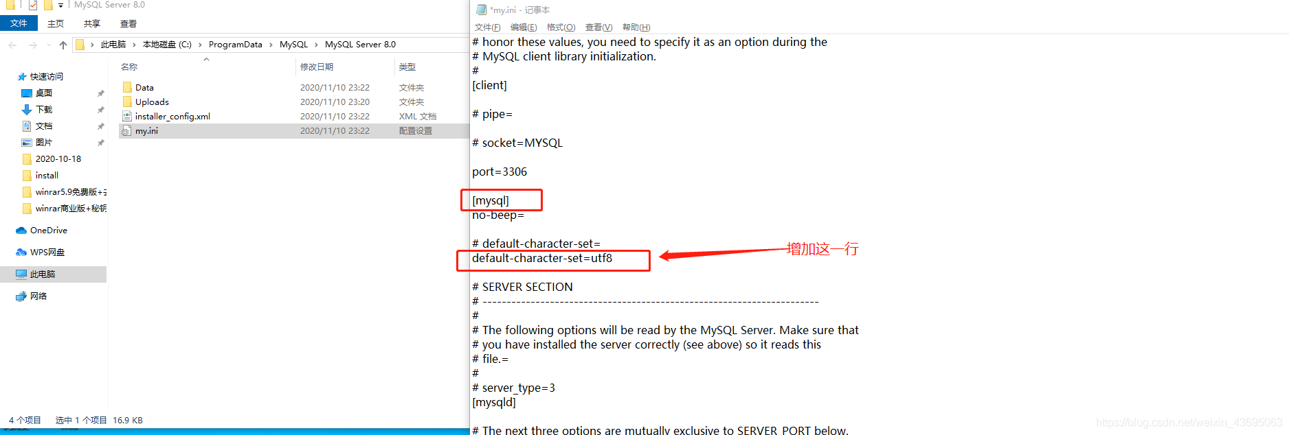 修改MySQL默認安裝目錄C:\ProgramData\MySQL\MySQL Server 8.0 下的 my.ini 文件