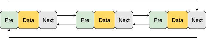 其實(shí)所謂的LRU鏈表本質(zhì)上就是一個(gè)雙向循環(huán)鏈表,如下圖: