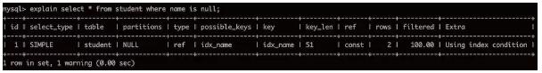 查詢name為null的行: