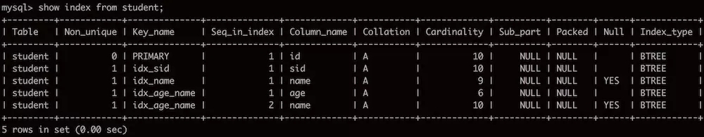 給age和name添加聯(lián)合索引: