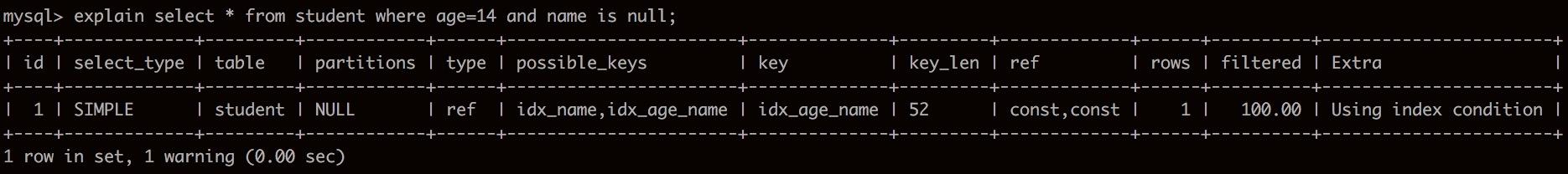 可以發(fā)現(xiàn)同樣用到了索引。