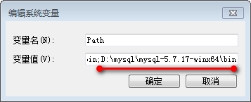 2.配置環(huán)境變量,將D:\mysql\mysql-5.7.17-winx64\bin這個(gè)目錄加入到Path下。