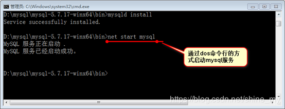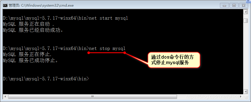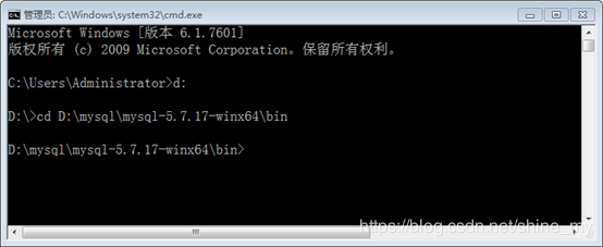 1.用管理員模式打開(kāi)dos命令行,進(jìn)入到mysql的bin目錄下。