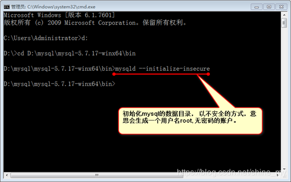 2.初始化數(shù)據(jù),執(zhí)行命令: mysqld --initialize-insecure(前邊有空格后邊無(wú)空格)