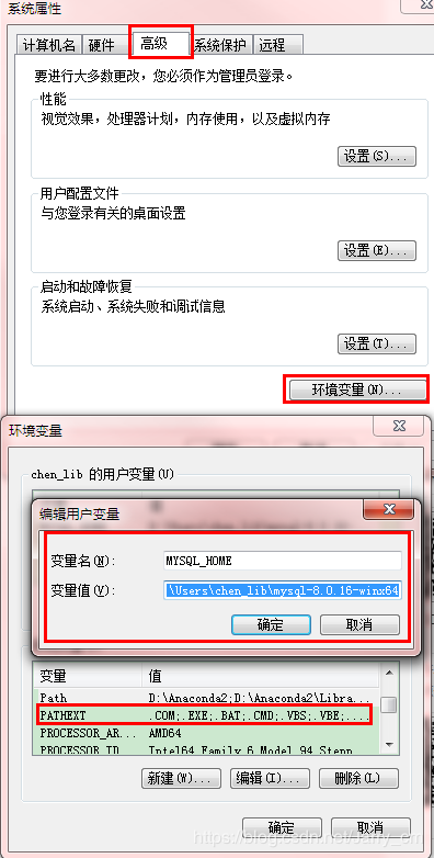 變量值:D:\Users\chen_lib\mysql-8.0.16-winx64