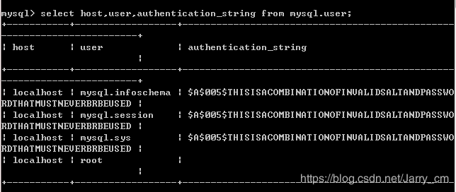 命令:mysql> select host,user,authentication_string from mysql.user;