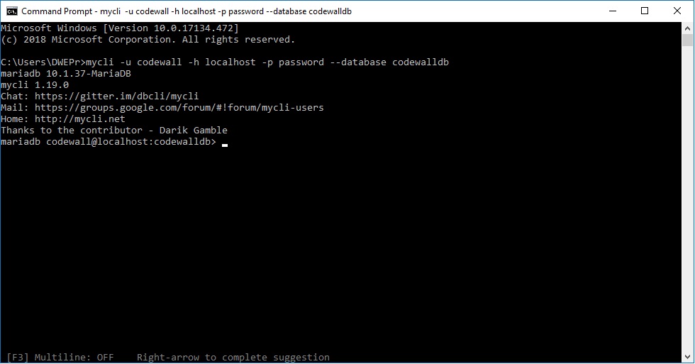 mycli -u your_user_name -h your_host -p your_password --database your_db_name