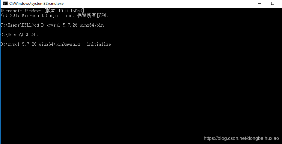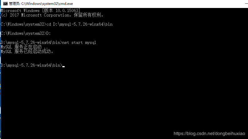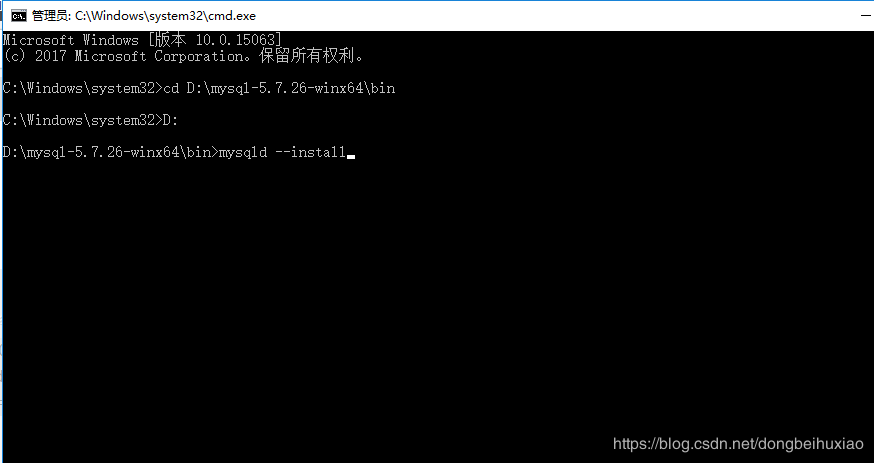 6、再次進入bin目錄,運行mysqld --install,安裝mysql