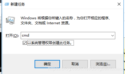 5、執(zhí)行mysqld --install,但是突然出現(xiàn)了“Install/Remove of the Service Denied"這個錯誤怎么辦?因為我們沒有管理員權(quán)限,打開任務(wù)管理器-文件-運行新任務(wù),選中“以系統(tǒng)管理權(quán)限創(chuàng)建此任務(wù)”
