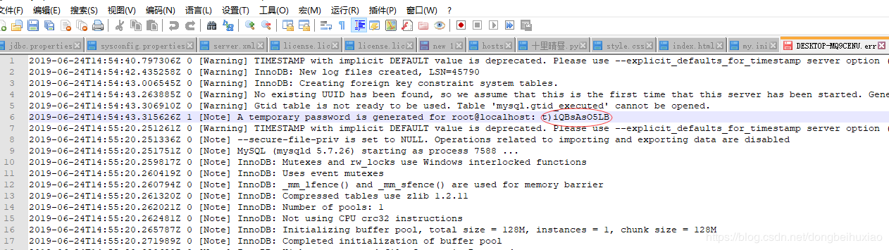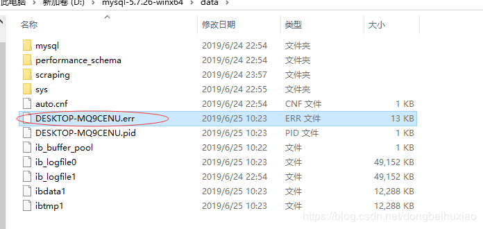 8、運行mysql -u root -p登錄,第一次登錄有個臨時密碼,在data文件夾里面的err結(jié)尾的文件里