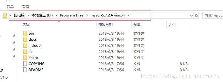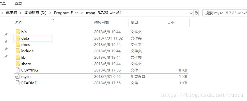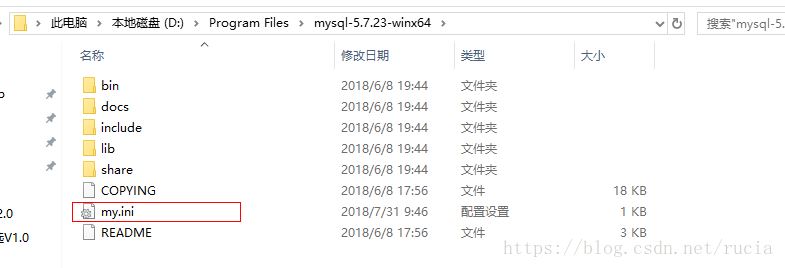 將my.ini文件放到D:\Program Files\mysql-5.7.23-winx64目錄下。