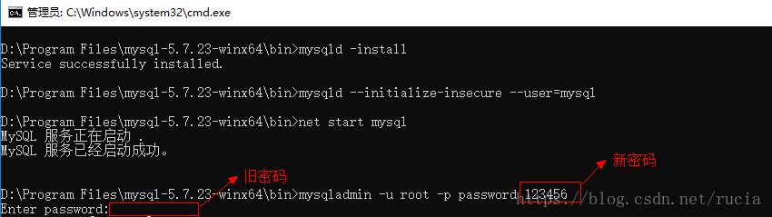 9.啟動(dòng)成功,執(zhí)行"mysqladmin -u root -p password 新密碼"命令設(shè)置密碼,root舊密碼為空,直接回車就可以。