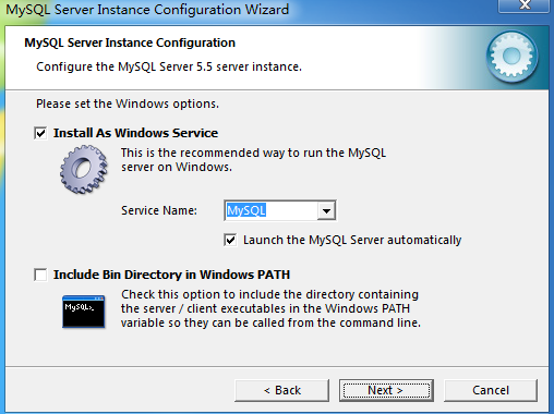 配置MySQL的服務(wù)選項(xiàng),可以將MySQL服務(wù)器安裝成服務(wù)。安裝成服務(wù),系統(tǒng)啟動(dòng)時(shí)可以自動(dòng)啟動(dòng)MySQL服務(wù)器