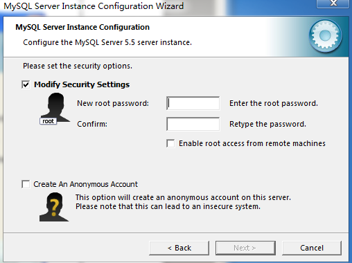 下面有個(gè)復(fù)選框是選擇是否允許遠(yuǎn)程機(jī)器用root用戶連接到你的mysql服務(wù)器上面,如果有這個(gè)需求,也請(qǐng)勾選。