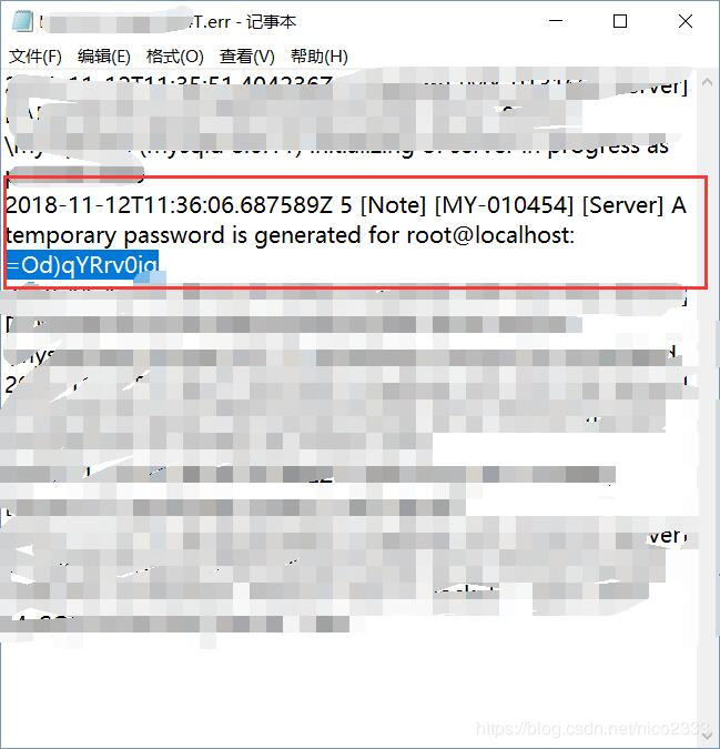 這個地方我也有點迷,明明在前面安裝MySQL的時候有要你設(shè)置一個密碼,但是其實那個密碼貌似用不到,這個地方應(yīng)該輸入的是它自動生成的隨機初始密碼,而這個初始隨機密碼放在MySQL安裝目錄下一個.err文件里。也不算難找吧,整個文件夾里好像就這一個.err類型的文件,直接在文件夾里搜索就好了
