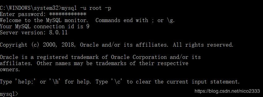 mysql -u root -p