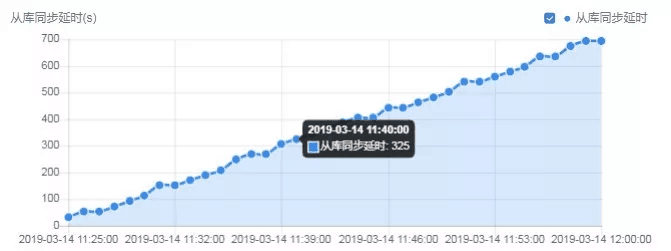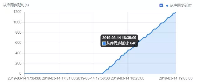 ‘Seconds_Behind_Master'的值,就能夠了解當前某個數(shù)據(jù)庫和它的主庫之間的數(shù)據(jù)復制延時。這個值是如此的重要,因此在UDB的監(jiān)控界面上,我們將這個值單獨抽取來,設計了“從庫同步延時”監(jiān)控項,以便于運維人員能夠直接在控制臺上觀察。