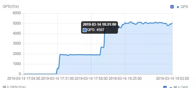 如上圖,可以看出,在17:58分左右QPS突增,查看控制臺上的寫相關QPS,也有相應提升。而QPS突增的時間,對應的延時也在逐步上升,如下圖所示。