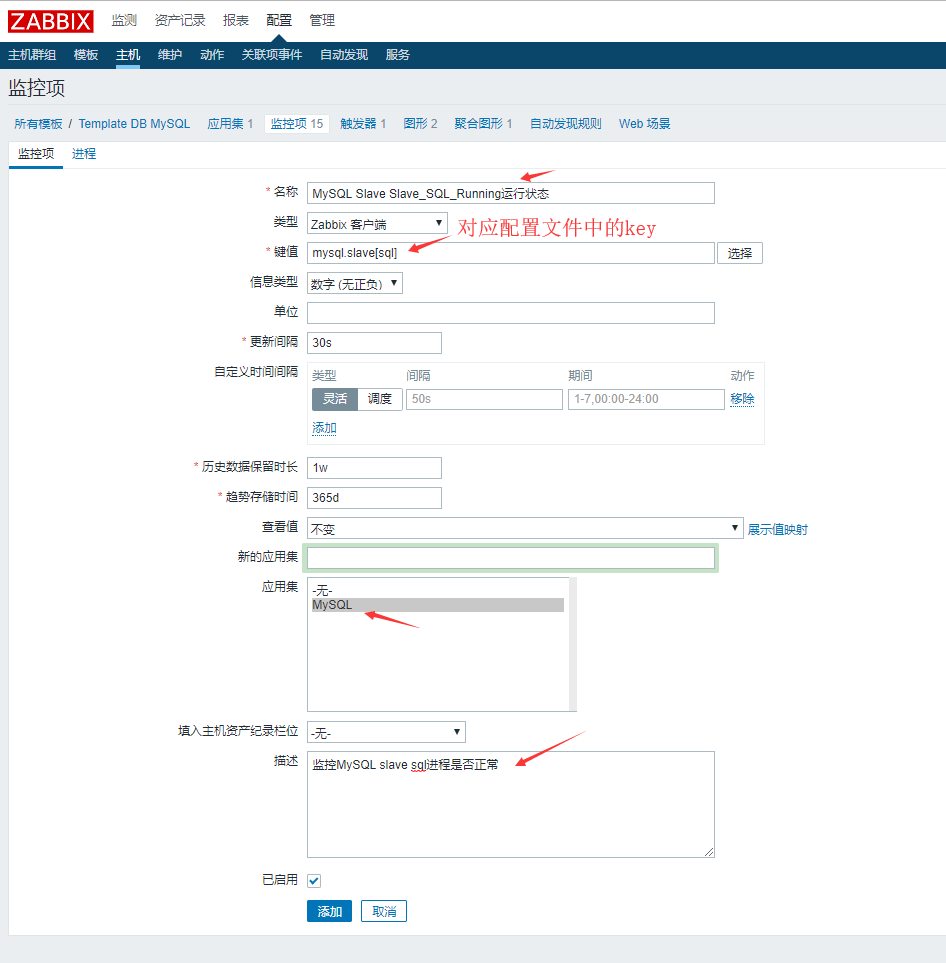 2)配置Slave_SQL_Running線程監(jiān)控項