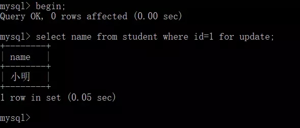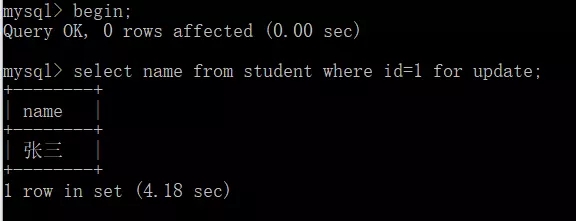 對(duì) for update上鎖進(jìn)行一次實(shí)踐一個(gè)student表,其中有一條數(shù)據(jù)