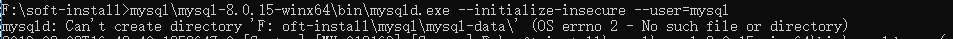 5、初始化數(shù)據(jù)文件mysql\mysql-8.0.15-winx64\bin\mysqld.exe --initialize-insecure --user=mysql --console