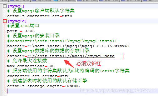 配置文件my.ini內(nèi)容(路徑因情況而已,改成自己的就好了)