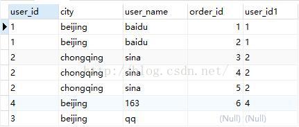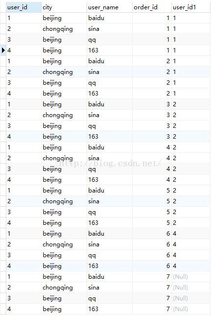 總共有28(user的記錄條數(shù) * orders的記錄條數(shù))條記錄。這就是VT1的結(jié)果,接下來的操作就在VT1的基礎上進行