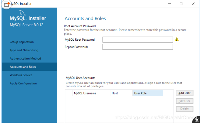 3.安裝成功以后,一直點擊next,遇到以下窗口,設(shè)置root用戶的密碼,也可以自己添加用戶