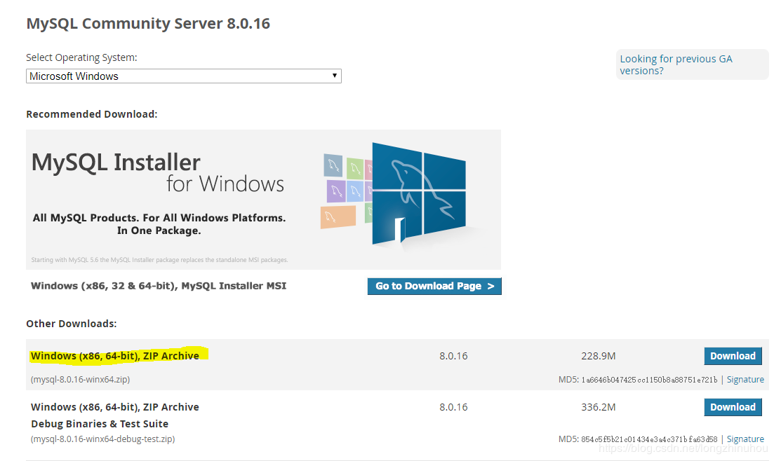 1. 下載MySQL 8.0.16