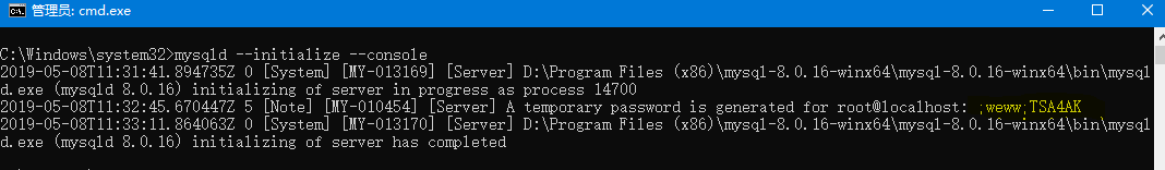 mysqld --initialize --console
