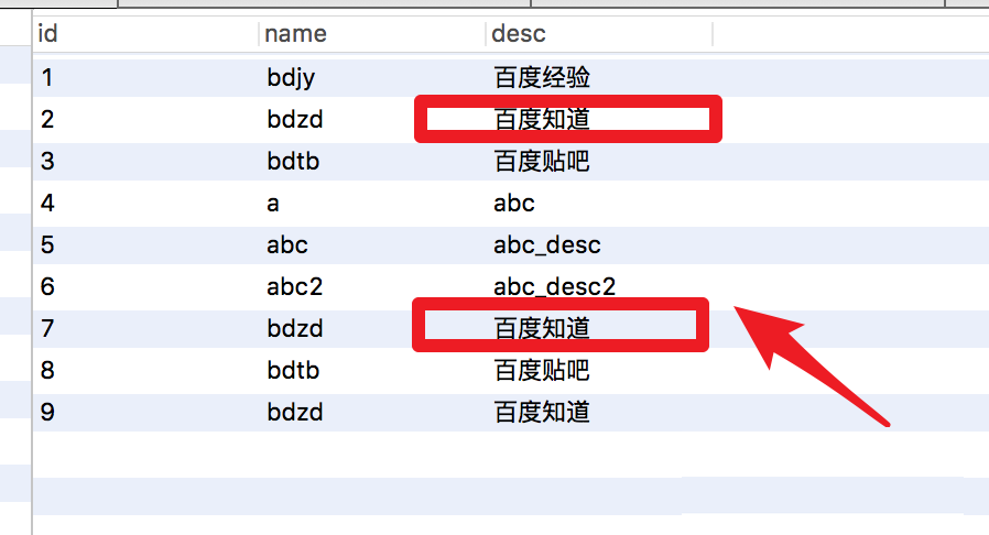 先看下我們的表數(shù)據(jù),有一些數(shù)據(jù)是重復(fù)的。