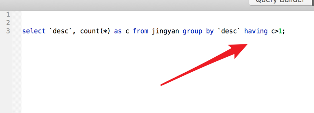要查找重復(fù)數(shù)據(jù),我們可以使用mysql里的having語句,如圖。