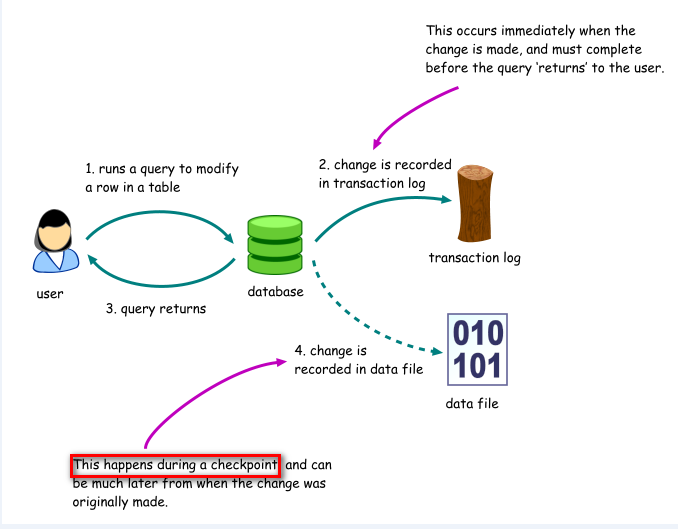 在SQL Server中,進行insert, update, delete時,數(shù)據(jù)并沒有直接寫入數(shù)據(jù)庫對應(yīng)的mdf文件中,而是寫入了緩存里,這時,就要提到一個非常重要機制:CheckPoint,它主要作用是把緩存中的數(shù)據(jù)寫入mdf文件中。