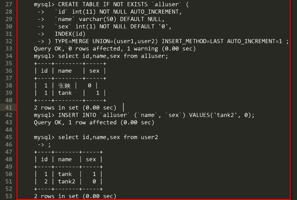 5.實(shí)現(xiàn)拆成二張表user1和user2,每張表25W條數(shù)據(jù)的方法代碼。插入的數(shù)據(jù)方法代碼