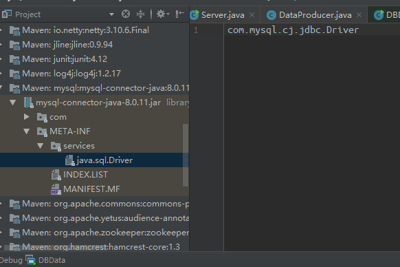 深入跟蹤代碼后發(fā)現(xiàn)實(shí)際上只要我們引入了mysql的驅(qū)動(dòng)包,那么在使用時(shí)會(huì)根據(jù)驅(qū)動(dòng)包下提供的配置文件默認(rèn)的創(chuàng)建一個(gè)類。