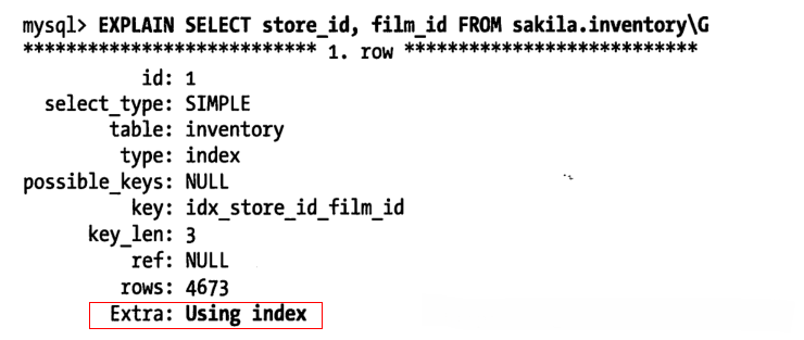 當(dāng)發(fā)起一個索引覆蓋查詢時,在explain的extra列可以看到using index的信息