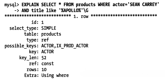 1.沒有任何索引能夠覆蓋這個索引。因為查詢從表中選擇了所有的列,而沒有任何索引覆蓋了所有的列。