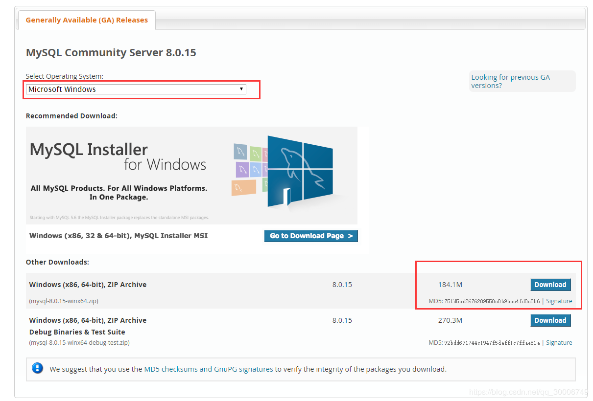 2.1.1 在MySQL官網(wǎng) 下載 Windows 版本的 MySQL 安裝包