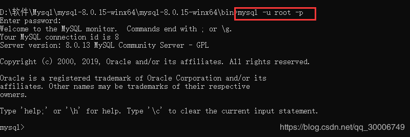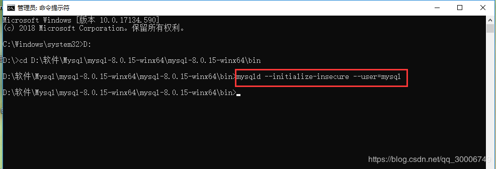 D: cd D:\軟件\Mysql\mysql-8.0.15-winx64\mysql-8.0.15-winx64\bin