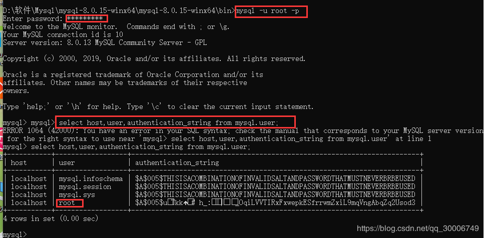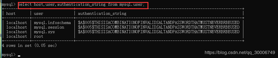 1.如果當(dāng)前root用戶authentication_string字段下有內(nèi)容,先將其設(shè)置為空,沒(méi)有就跳到步驟 2。