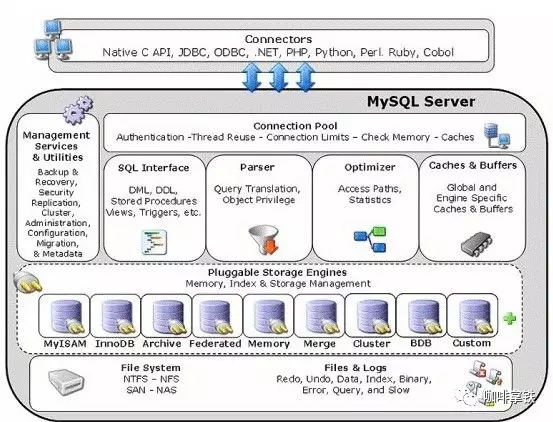 小明沒有著急去了解鎖這方面的知識,他首先先了解了下Mysql體系架構: